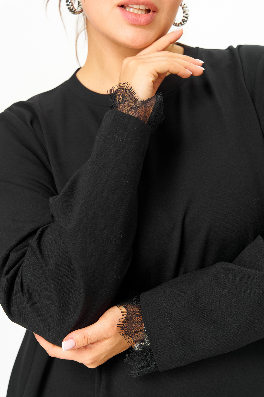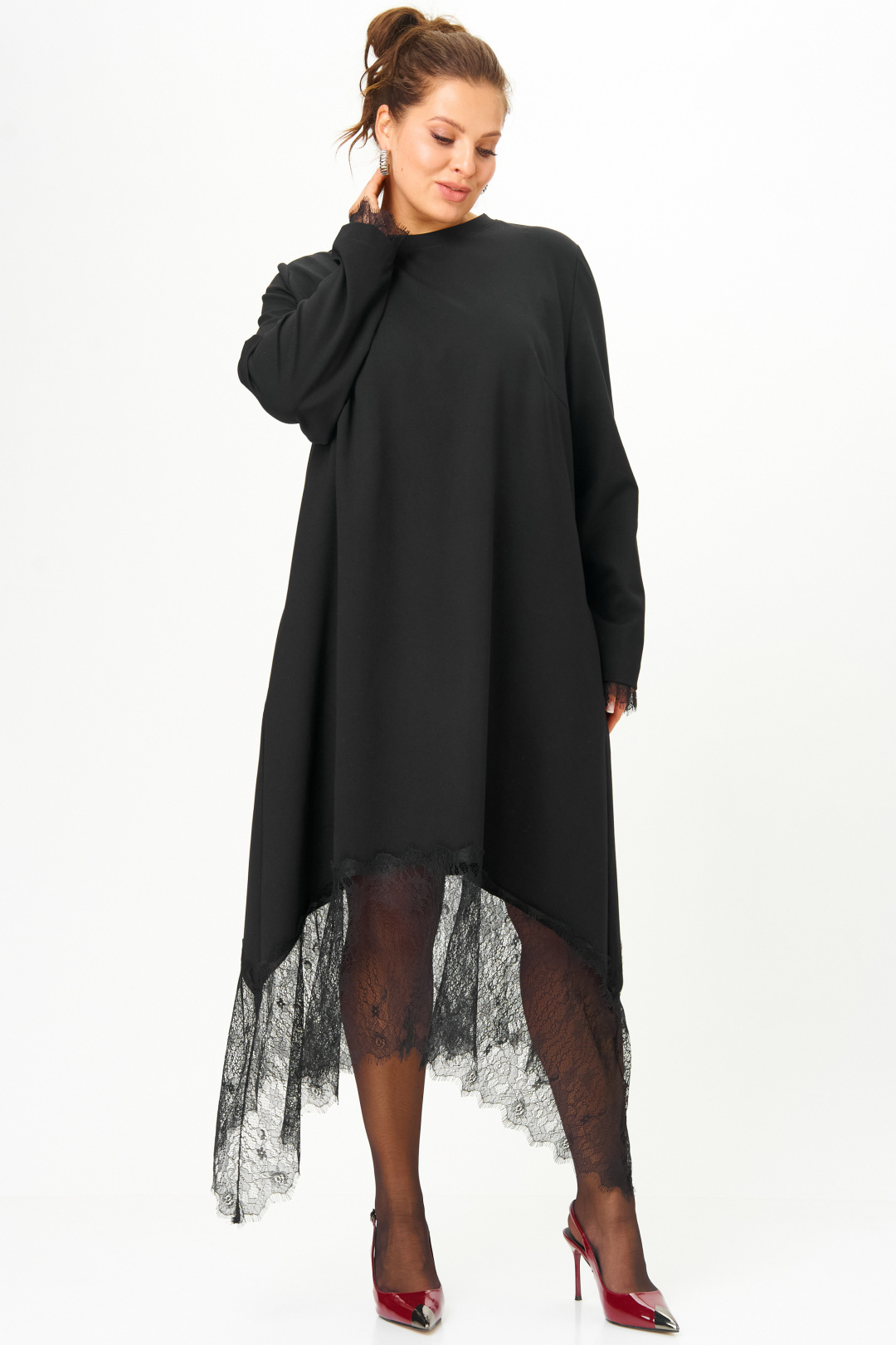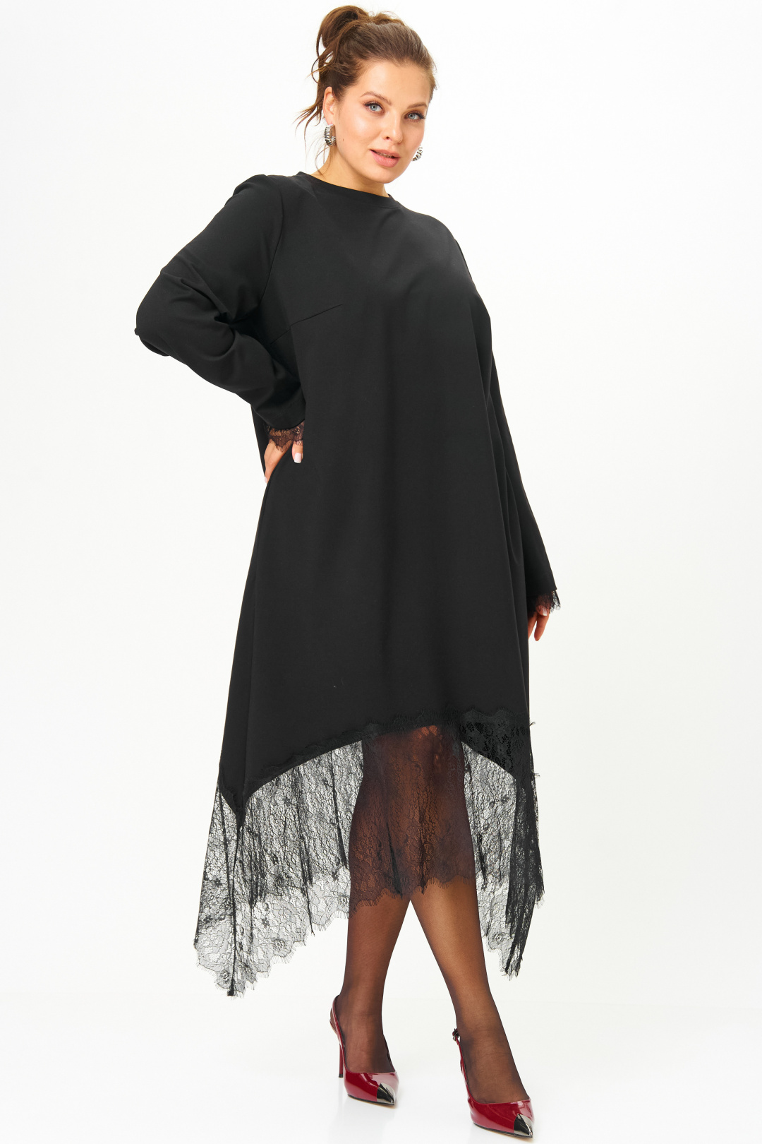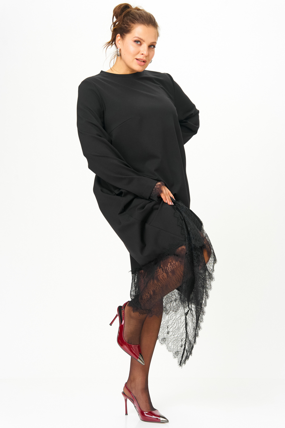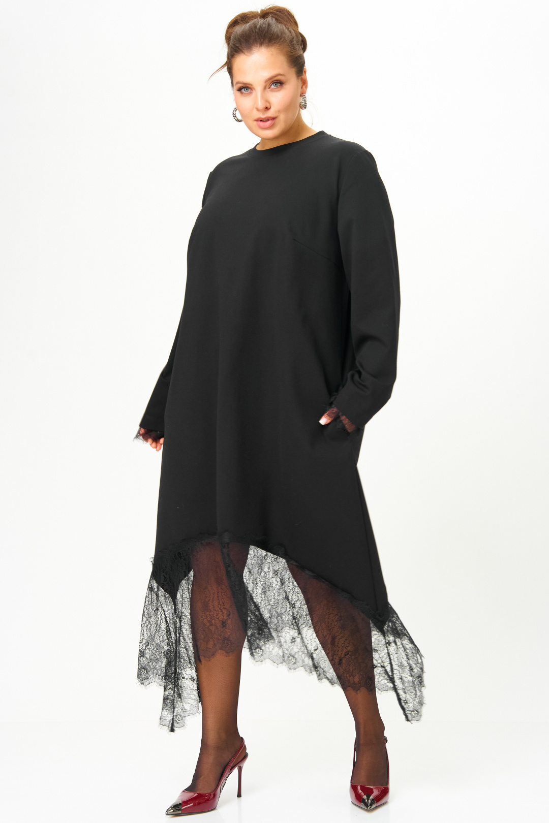 Эффектное платье выполнено из трикотажного полотна. Платье свободного трапециевидного силуэта, длиной макси. Рукав втачной длинный с манжеткой из кружева. В боковых швах имеются функциональные карманы. Низ платья оформлен кружевным воланом. Длинный фасон дает возможность создания стильного образа. Если немножко пофантазировать с обувью получится много стильных и интересных вариантов образа.