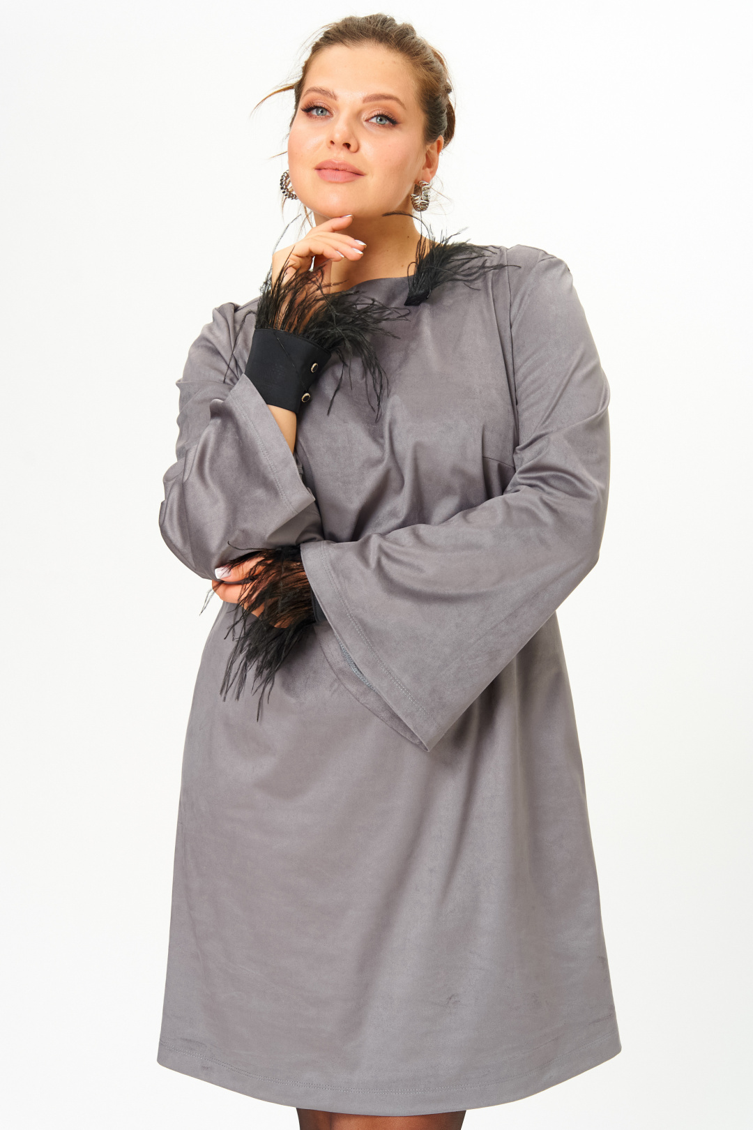 Съемные декоративные манжеты придают романтичность и нарядность образу. Манжета выполнена из атласной ткани и декорирована "перьями". Платье А-силуэта.