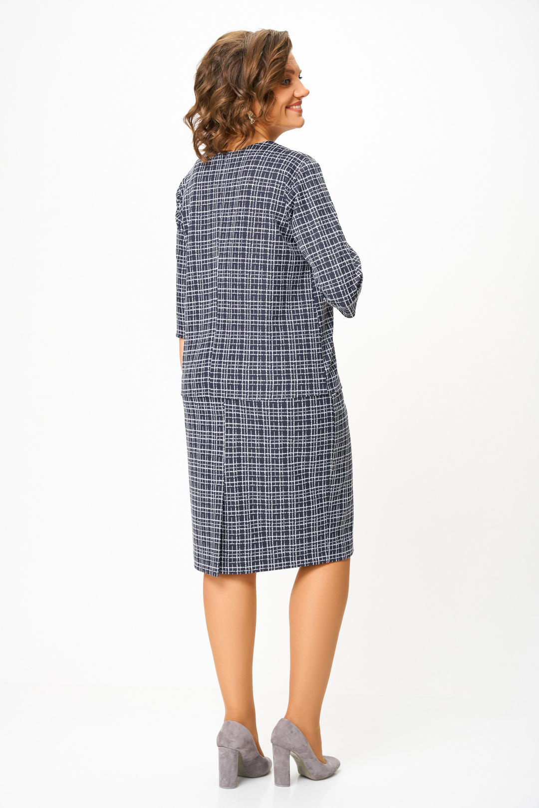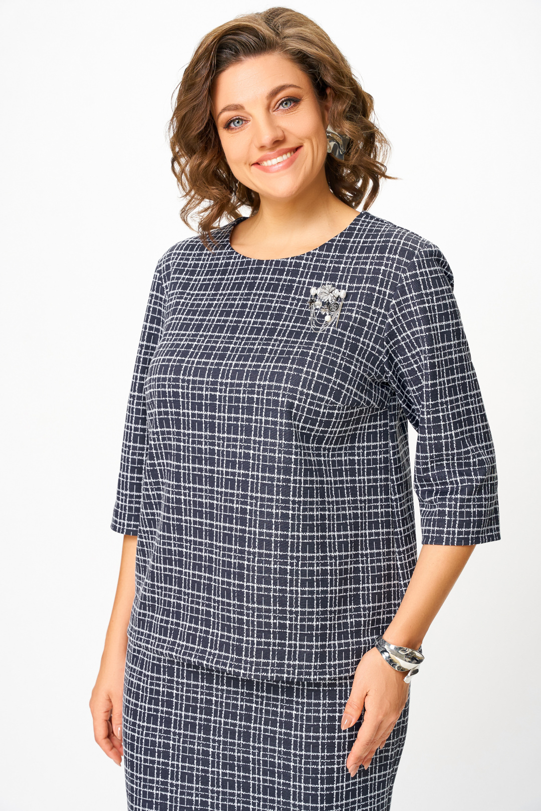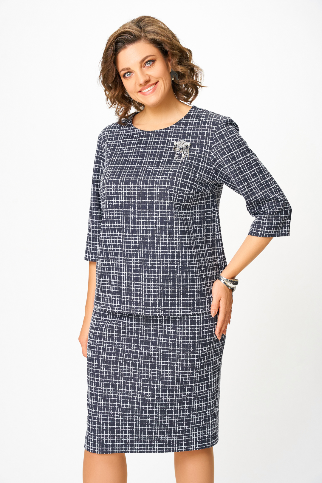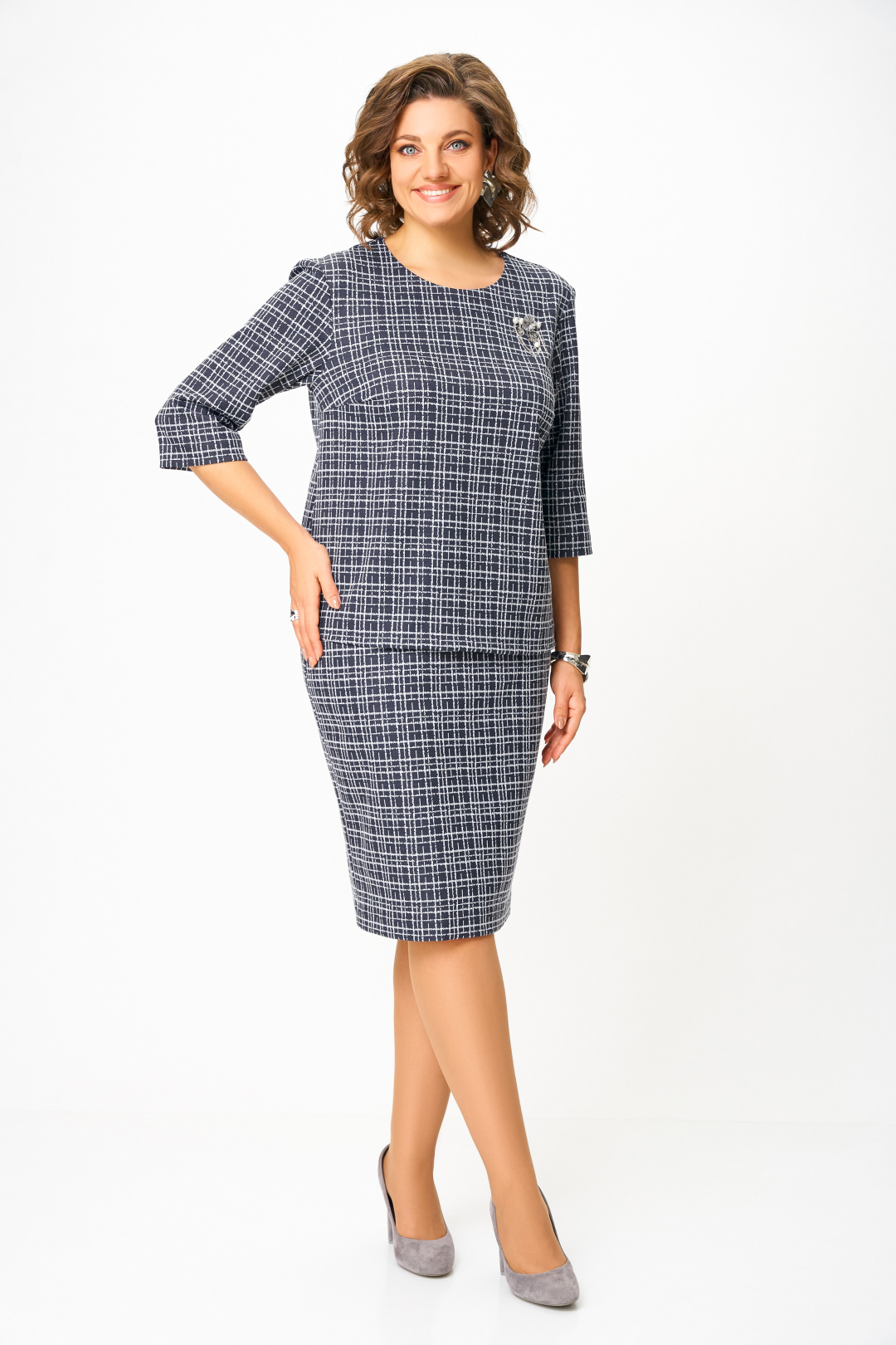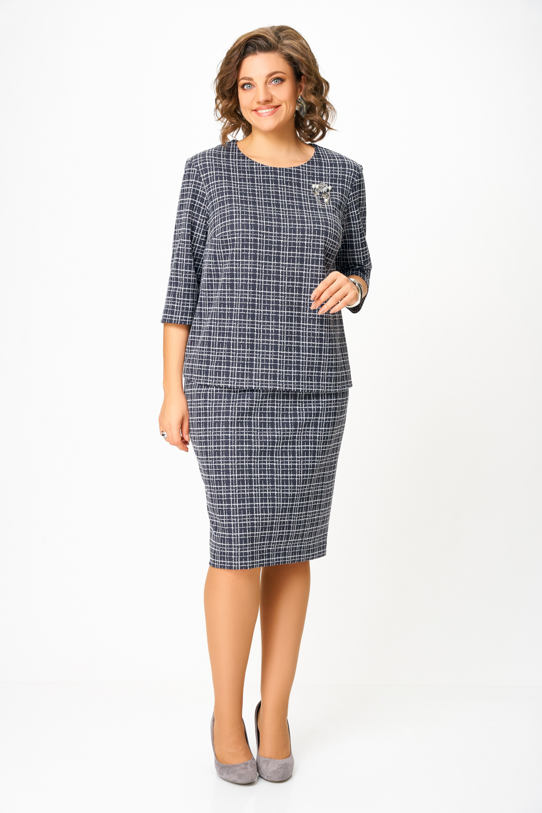 Костюм из трикотажного полотна в мелкий принт клетка, состоит из джемпера и юбки.