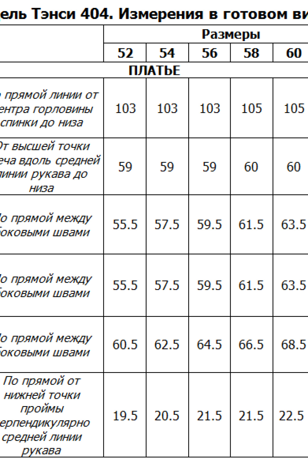 Длина от центра горловины спинки до низа для размеров 52-56 — 103 см, для размеров 58-62 — 105 см. Длина рукава с учётом плеча для размеров 52-56 — 59 см, для размеров 58-62 — 60 см.