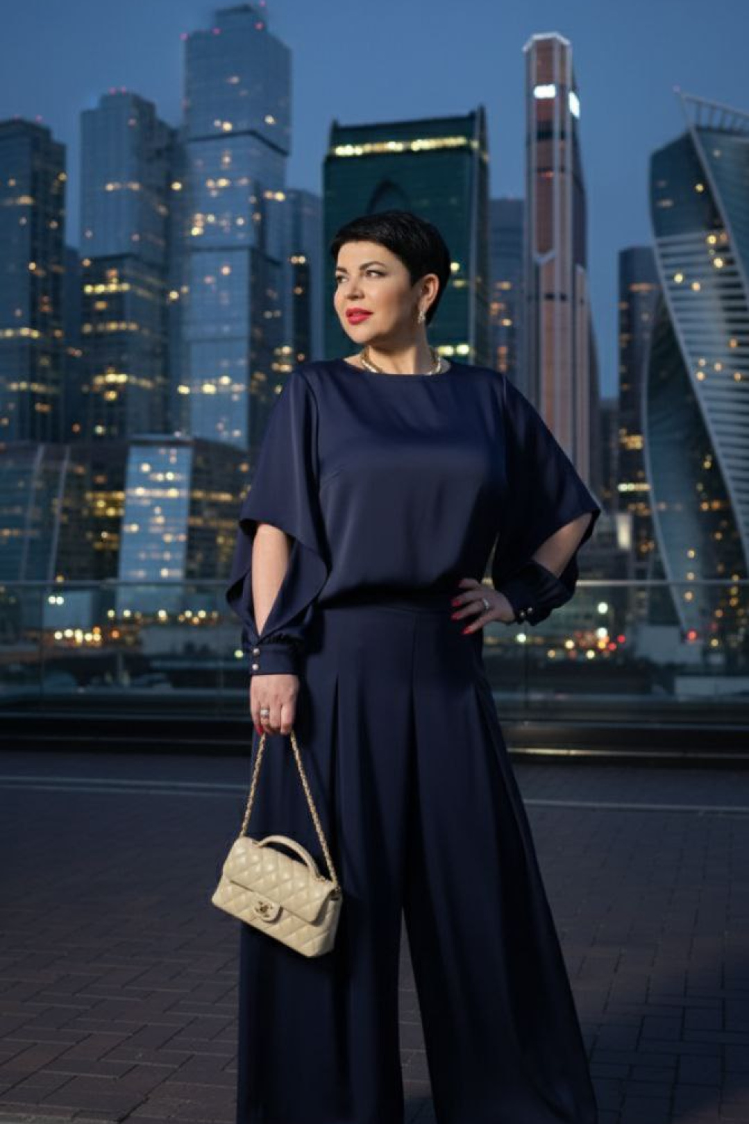 Данный костюм отлично подходит для торжественных мероприятий, свиданий, работы в офисе, если дополнить его соответствующими аксессуарами и обувью.