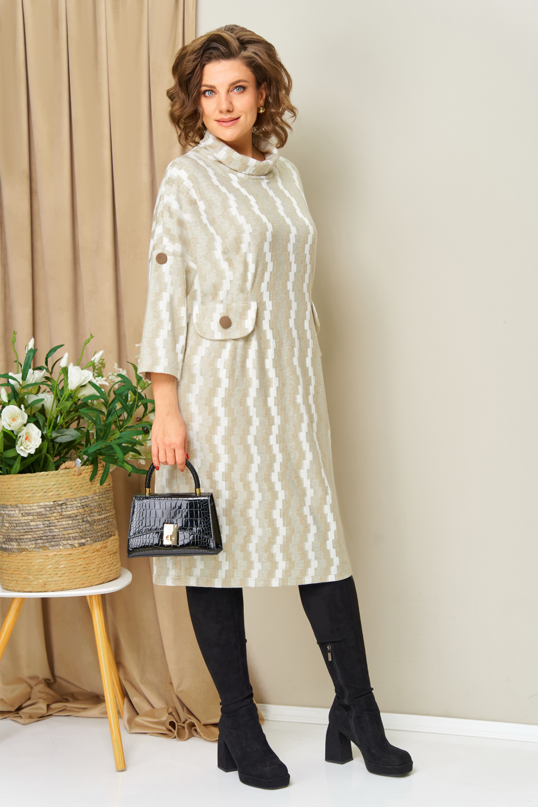 Идеальное платье из эластичного трикотажа , полуприлегающего силуэта, с горловиной формы мягкая стойка с подворотом. Клапаны сдекоративными однотонными пуговицами дополняют и украшают элегантный образ. Практичный материал не мнется и не теряет форму. Рукава платья длиной 7/8. Длина платья- 105 см по центру спинки.